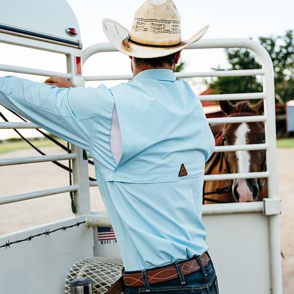 AG-GEAR Men’s Long Sleeve Hay Baler Button Down Shirt, Breathable Performance Work Shirt for Farmers and Ranchers with UPF30(Ice Blue)