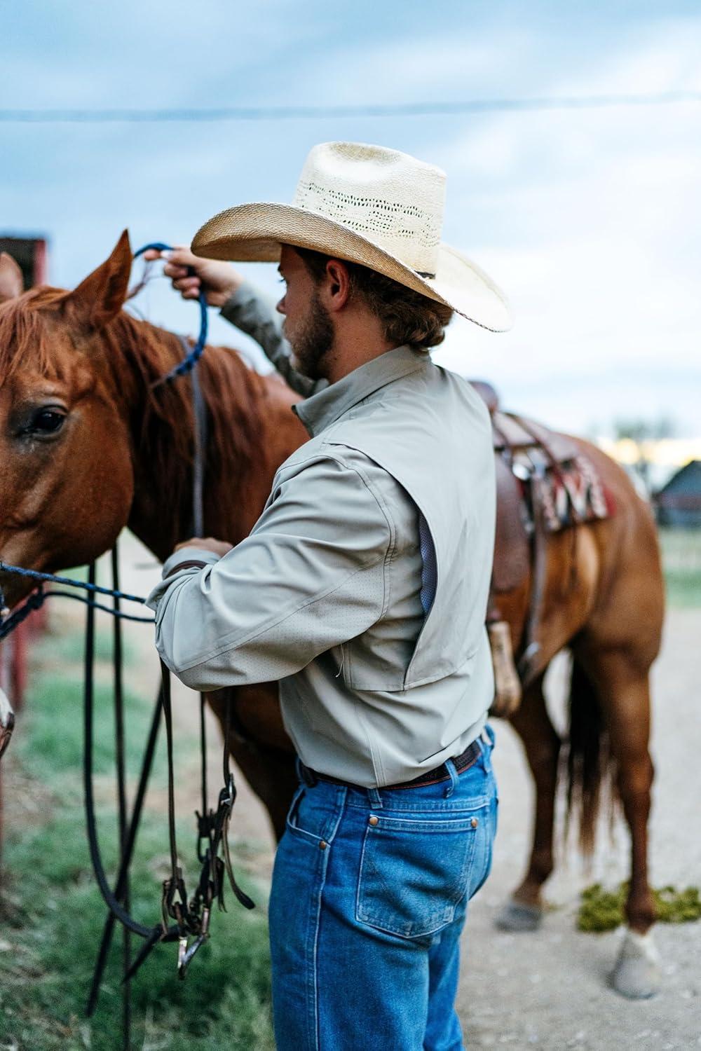AG-GEAR Men’s Long Sleeve Hay Baler Button Down Shirt, Breathable Performance Work Shirt for Farmers and Ranchers with UPF30(Ice Blue)