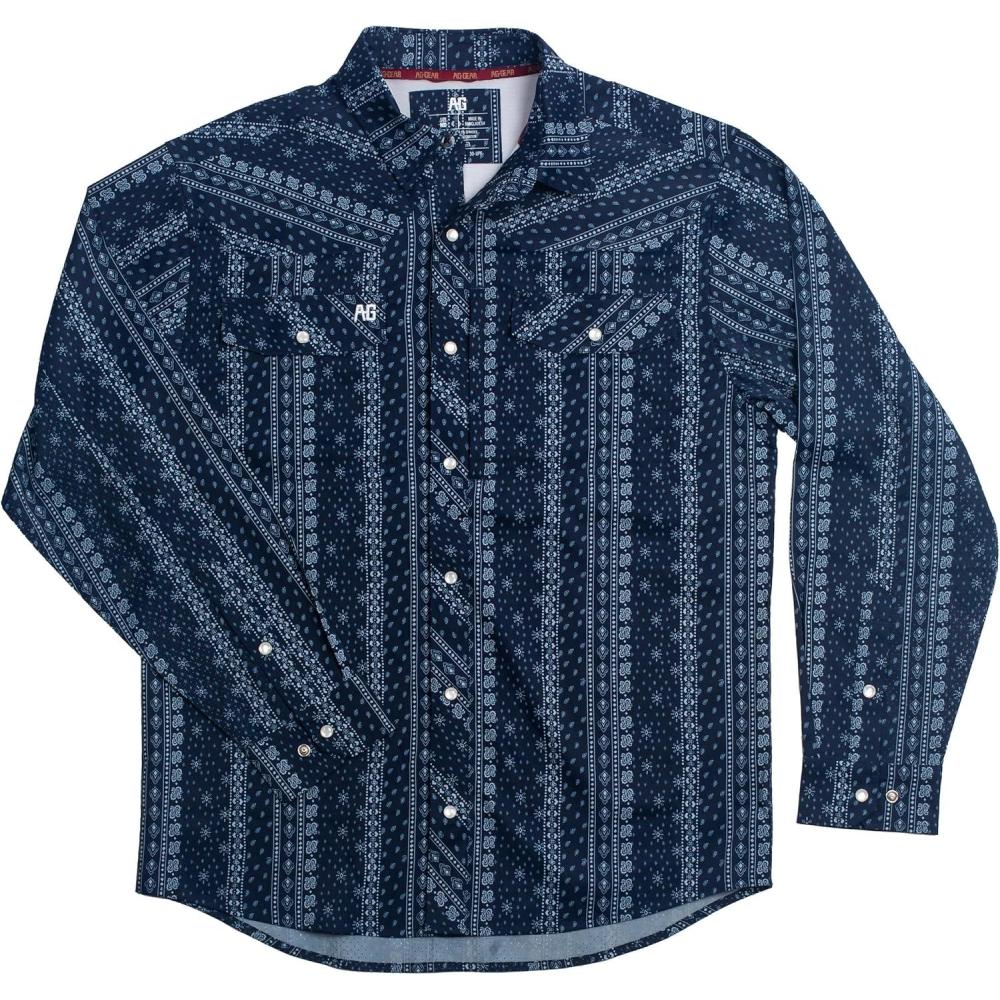AG-GEAR Men’s Long Sleeve Stockyard Pearl Snap Shirt, Breathable Button-Down Western Shirt for Men(Bandana-navy)