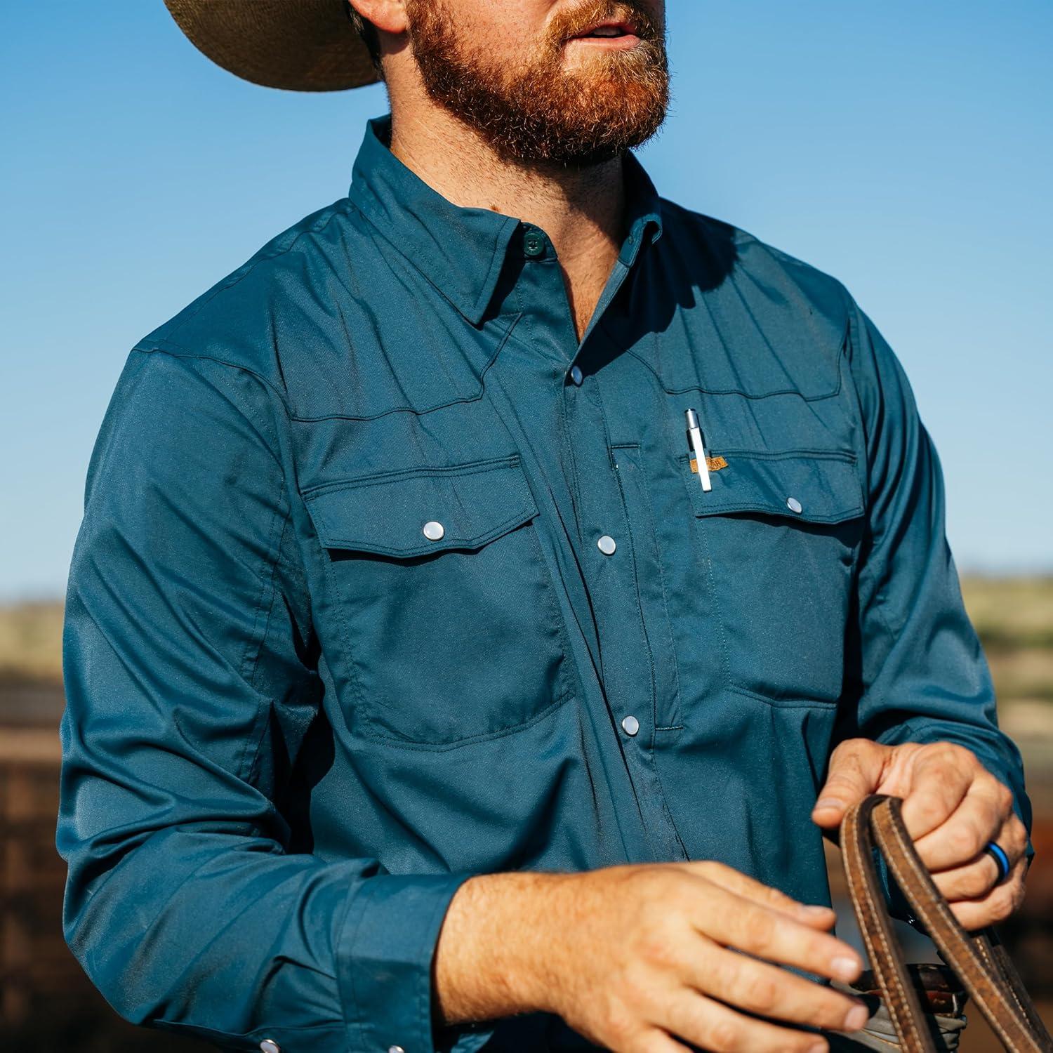 AG-GEAR Men’s Long Sleeve Stockyard Pearl Snap Shirt, Breathable Button-Down Western Shirt for Men(Dark Teal)