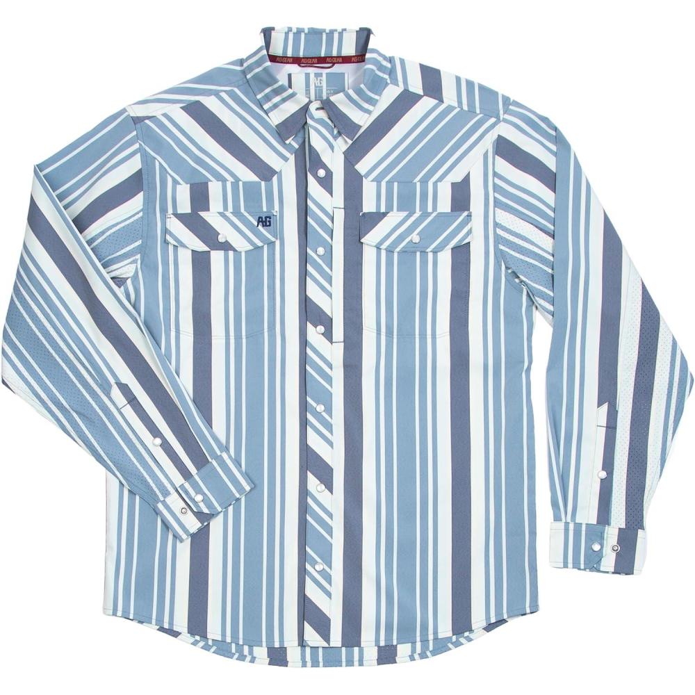 AG-GEAR Men’s Long Sleeve Stockyard Pearl Snap Shirt, Breathable Button-Down Western Shirt for Men(Mirror Stripe – Titanium Blue)