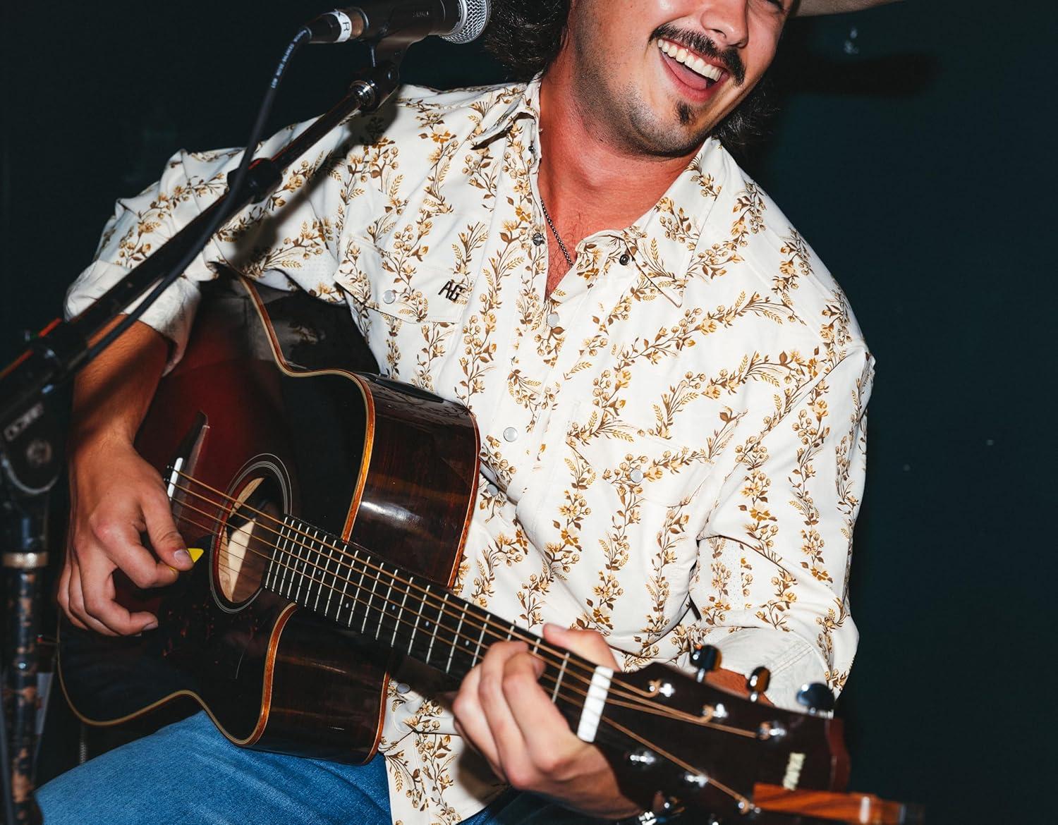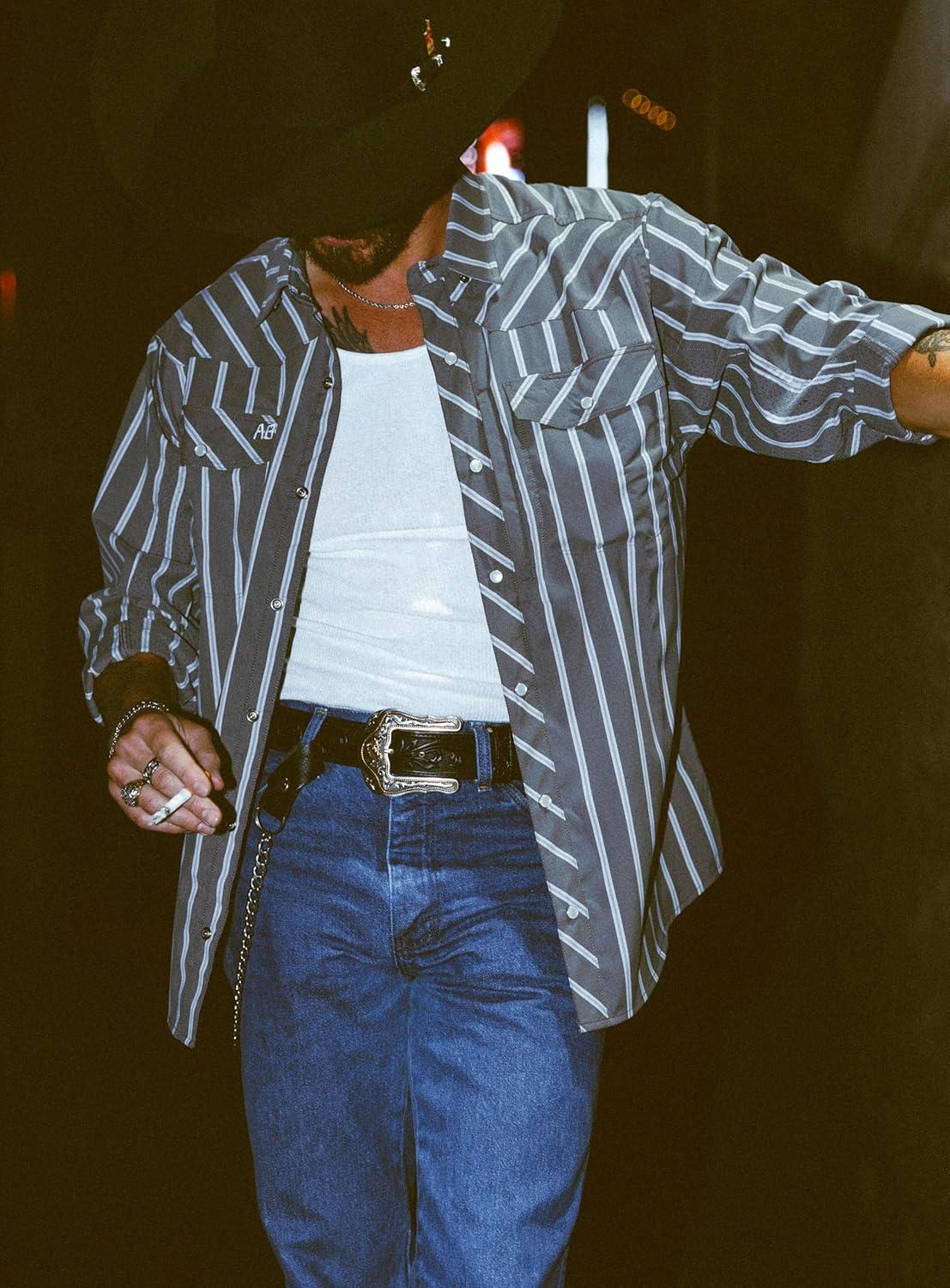 imageAGGEAR Mens Long Sleeve Stockyard Pearl Snap Shirt Breathable ButtonDown Western Shirt for MenWhite