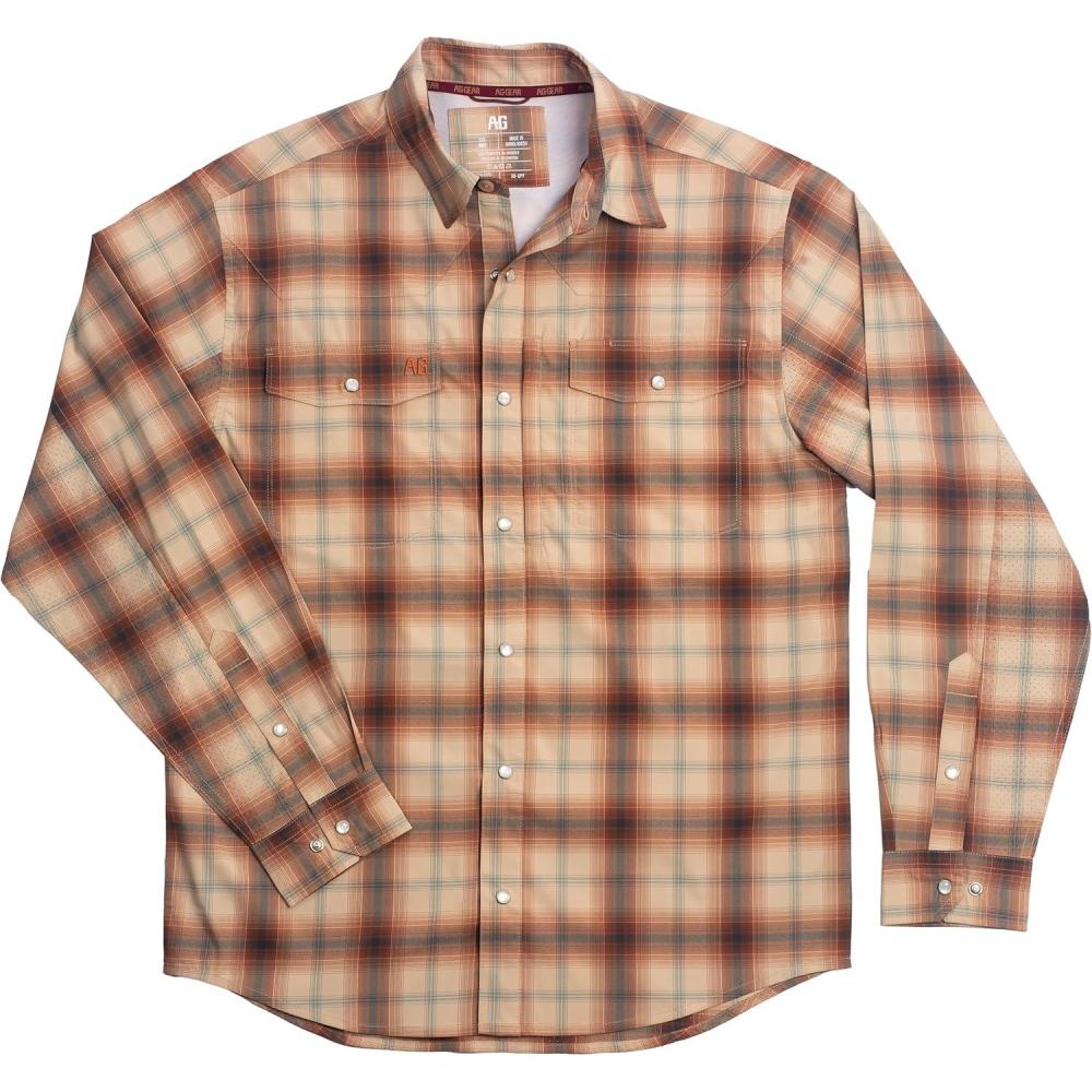 AG-GEAR Men’s Long Sleeve Stockyard Pearl Snap Shirt, Breathable Button-Down Western Shirt for Men(Plaid – Brick)