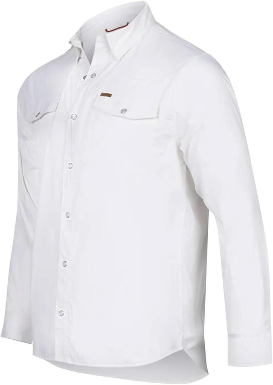 AG-GEAR Men’s Long Sleeve Stockyard Pearl Snap Shirt, Breathable Button-Down Western Shirt for Men(White)