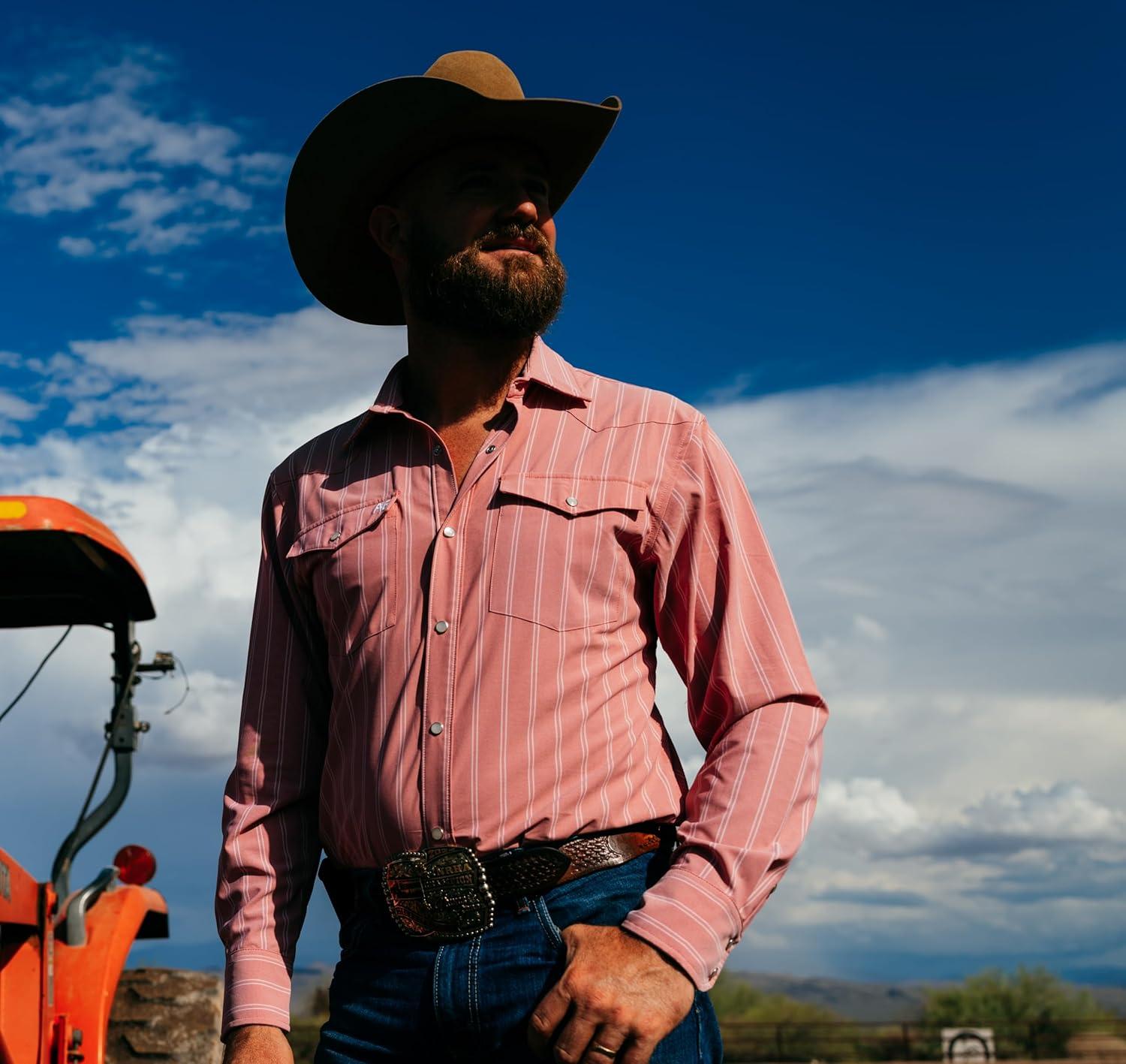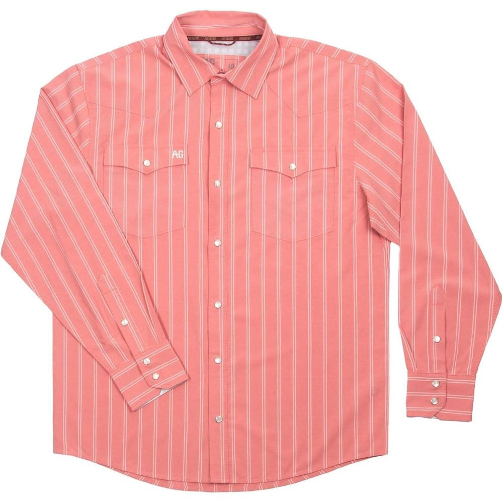 CLASSIC WESTERN SNAPFRONT STYLE: Timeless long sleeve Western design with snap front closures and a structured collar stay, built for comfort and style on the ranch, in the field, or at work, BREATHABLE PERFORMANCE FABRIC: Lightweight, moisture-wicking material keeps you cool and dry through long days outdoors, designed for farmers, ranchers, and hardworking men, UPF30 SUN PROTECTION: Provides built-in sun protection to shield you from harmful UV rays during extended outdoor work, helping reduce fatigue from the sun, DURABLE, VERSATILE, ALL-DAY COMFORT: Ideal for long hours of outdoor work, this shirt offers rugged durability, breathable comfort, and unrestricted movement for farmers, ranchers, and hardworking men, AG-GEAR: Born on a tractor, seeded with American Grit, then fertilized with American values