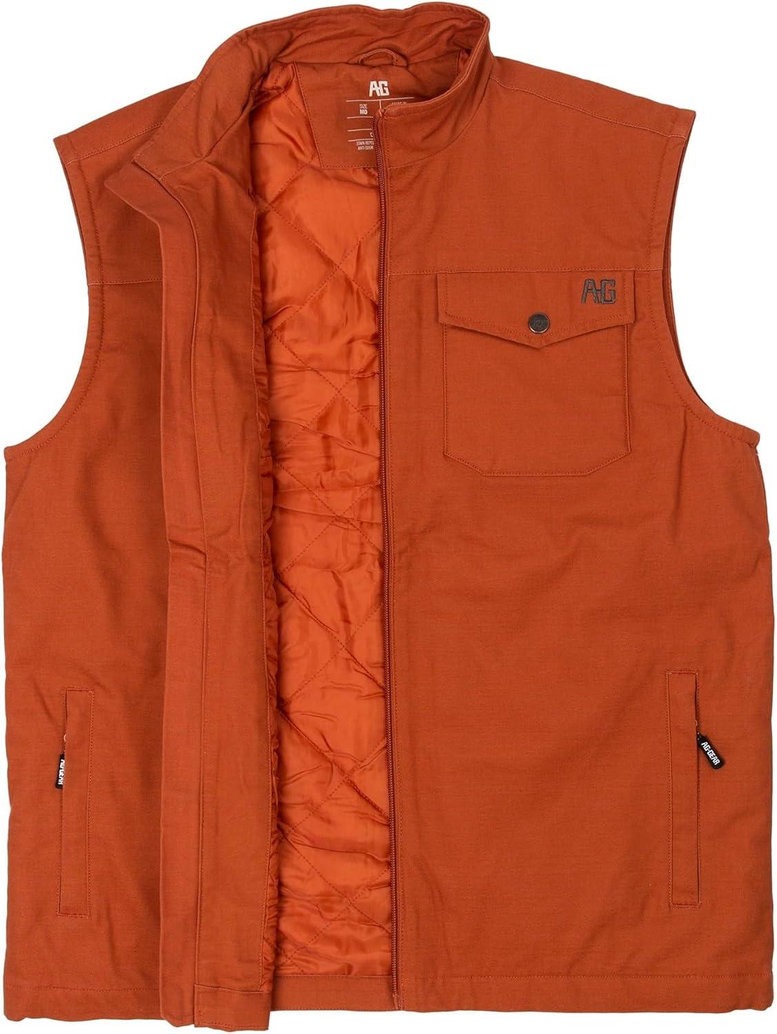AG-GEAR Men’s Winston Vest, Wind Resistant Cotton-Performance Work Vest, Full-Zip, Quilted Interior Lining, Snap Front Pocket(Brick)
