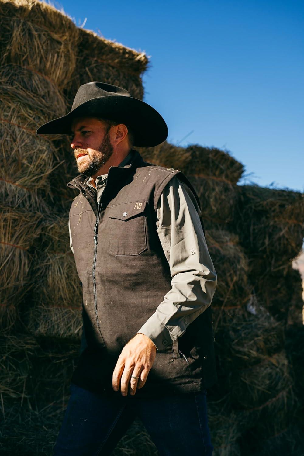 AG-GEAR Men’s Winston Vest, Wind Resistant Cotton-Performance Work Vest, Full-Zip, Quilted Interior Lining, Snap Front Pocket(Coyote)